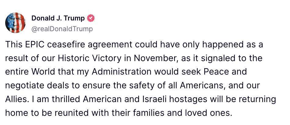 经过漫长等待,以色列与巴勒斯坦伊斯兰抵抗运动(哈马斯)终于就加沙地带停火达成协议。卡塔尔首相兼外交大臣穆罕默德15日晚正式宣布这一消息。消息一宣布,美国候任总统特朗普和总统拜登就先后发声,忙着“抢功”。 穆罕默德15日晚在数度推迟的记者会上说,卡塔尔、埃及和美国的联合调解努力已取得成功,加沙冲突各方就停火和交换被扣押人员达成协议。协议第一阶段将于1月19日开始实施,哈马斯将释放33名被扣押人员,以交换以色列释放巴勒斯坦被扣押人员。协议第二阶段和第三阶段的详细内容将在第一阶段完成后公布。 同日,特朗普在他创建的社交平台“真实社交”上发文,将该协议的达成归功于自己在2024年美国总统选举中获胜,并强调其国家安全团队和中东问题特使的贡献。 社交媒体平台“真实社交”网页截图特朗普发文不久,拜登也在白宫发表演讲,宣布达成停火协议的消息。他说,该协议框架与他去年5月的提议相吻合。 拜登在演讲中强调自己政府在停火协议谈判过程中所做贡献,表示会让自己的团队与即将上任的特朗普团队密切协商,以确保发出一致的声音。 拜登演讲结束后,转身准备离场。这时,在场记者追问功劳在谁,是他还是特朗普?拜登回过头反问:“你是在开玩笑吗?” 多重因素促成协议达成 关于谁贡献大的问题,美国《国会山》日报15日刊文认为,虽然协议框架与拜登去年5月的提议相吻合“在事实层面上没问题”,但这份在过去8个月里看似遥不可及的协议能够在拜登马上要卸任时达成,“不会是单纯的巧合”。 文章称,特朗普先前警告,哈马斯如果在他就职前仍未释放以方被扣押人员,将“付出巨大代价”。一些了解情况的内部人士认为,上述言论可能给哈马斯方面谈判代表施加压力,迫使他们作出让步、达成协议。与此同时,以色列《国土报》一篇专栏文章报道,特朗普任命的下届政府中东问题特使史蒂文·危特科夫上周赴中东参与协议谈判期间,对以色列总理内塔尼亚胡施加了压力。 对于拜登和特朗普,法新社援引拜登政府一名高级官员的话指出,两人之间几乎没有什么好感,不太可能成为搭档,却为了停火协议展开合作,足见这份协议的重要程度。 实际上,美国在巴以问题上长期“拉偏架”,在外交和军事等方面偏袒以色列,反而致使停火谈判久拖不决。协议最终能够达成,更重要的是中东局势变化。 不少分析人士指出,这份停火协议由多重因素共同发力使然,绝非美国一家之功。自2023年10月新一轮巴以冲突爆发以来,以色列方面既没能通过军事行动解救被扣押人员,也始终无法实现“彻底清除哈马斯力量”的目标,反而造成超过4.6万巴勒斯坦人死亡,导致以国内反战情绪和国际舆论压力不断高涨;而在加沙地带,人道主义灾难日益严重,伤亡人数持续上升,哈马斯内部结构和外部支持也遭严重削弱,迫切需要停火喘息。因此,在民愿诉求和国际劝和促谈努力共同推动下,冲突双方作出让步。以色列通过协议解救被扣押人员,实现其核心关切,而巴方可获得人道援助实现“休养生息”。不过,鉴于当前中东乱局已发展为地区多国间的冲突,停火协议能否全面落实,仍面临诸多挑战。(记者:邓仙来、胡友松、贾璠;视频:周啸天、王鑫方、鲁豫) |